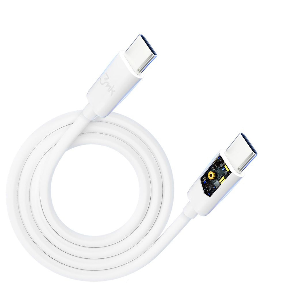 Kabel 3mk Hyper se pyšní minimalistickým a funkčním designem v čistě bílé barvě, která se hodí ke každému zařízení. Oba konektory USB-C jsou robustní a ergonomicky tvarované pro snadné připojení a odpojení. Na plastovém pouzdře konektorů je decentně vyraženo logo 3mk, které podtrhuje originalitu produktu. Vnitřní konstrukce kabelu je navržena s důrazem na maximální odolnost a efektivitu. Obsahuje několik izolovaných vodičů a opletené měděné stínění, což zaručuje stabilní a bezpečný provoz i při vysokém zatížení. Díky promyšlené vnitřní architektuře konektorů, která je viditelná na detailních snímcích, je zajištěna optimální vodivost a dlouhá životnost.