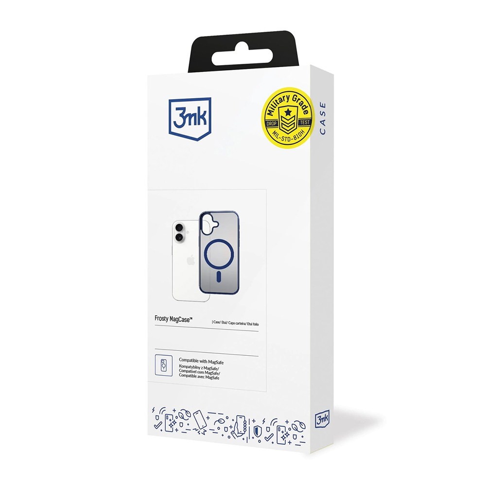Kryt 3mk Frosty MagCase se vyznačuje poloprůhledným matným povrchem v elegantním modrém odstínu, který dodává telefonu sofistikovaný vzhled a zároveň umožňuje prosvítat původnímu designu. Modré okraje krytu dokonale ladí s celkovým provedením a zajišťují pohodlný a jistý úchop. Na zadní straně je výrazně integrován modrý MagSafe kroužek a zarovnávací proužek, které zaručují bezproblémové připojení a optimální výkon MagSafe příslušenství. Kryt je navržen s precizními výřezy pro všechny porty a reproduktory a disponuje citlivými tlačítky EasyClick™, které zajišťují snadné ovládání bez kompromisů.