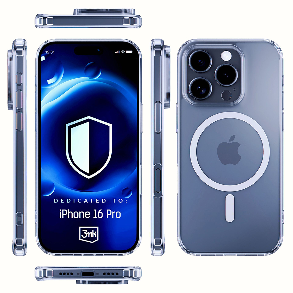 Pouzdro 3mk MagCase se vyznačuje křišťálově čistým provedením, které nechá vyniknout sofistikovaný design vašeho iPhone 16 Pro. Je vyrobeno z vysoce kvalitního transparentního materiálu, který je odolný proti žloutnutí a poškrábání. Integrovaný MagSafe kroužek na zadní straně zajišťuje plnou kompatibilitu s MagSafe příslušenstvím, což umožňuje snadné a bezpečné bezdrátové nabíjení a připojení dalších doplňků. Kryt je navržen s přesnými výřezy pro všechny porty a fotoaparáty, zatímco citlivá tlačítka EasyClick™ zaručují pohodlné ovládání bez omezení. Díky svému tenkému profilu pouzdro nepřidává telefonu zbytečný objem, ale zároveň poskytuje robustní ochranu.