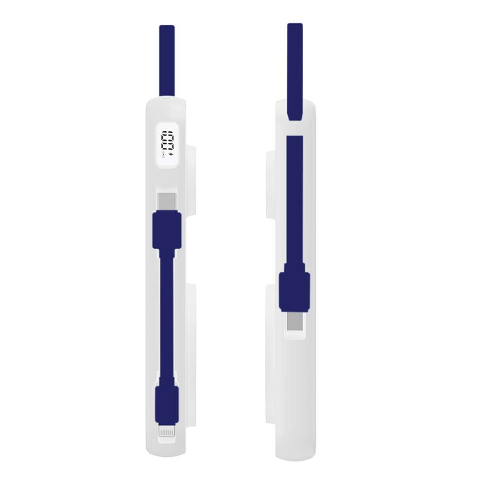 Design power banky 3mk PastelUp je promyšlený do posledního detailu. Její kompaktní a obdélníkový tvar s jemně zaoblenými rohy skvěle padne do ruky i do každé tašky. Povrch je hladký a matný, což dodává produktu prémiový vzhled a příjemný pocit na dotek. Na přední straně naleznete dvě kruhové plochy pro bezdrátové nabíjení Qi a MagSafe, diskrétně označené ikonami baterie a blesku. Praktické modré poutko nejen usnadňuje přenášení, ale zároveň dodává power bance moderní a stylový akcent.