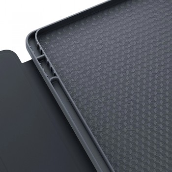Obal 3mk Soft Tablet Case se pyšní minimalistickým a sofistikovaným designem v elegantní černé barvě. Jeho povrch je vyroben z měkkého materiálu, který je příjemný na dotek a zároveň poskytuje pevný úchop, čímž minimalizuje riziko vyklouznutí tabletu z ruky. Charakteristickým prvkem je trojitě skládací přední kryt, který nejen chrání displej, ale také umožňuje snadné složení do praktického stojánku. Díky tomu můžete pohodlně sledovat filmy, psát nebo uskutečňovat videohovory v optimálním úhlu. Přesné výřezy zajišťují snadný přístup ke všem portům a tlačítkům, aniž by bylo nutné tablet z obalu vyjímat.