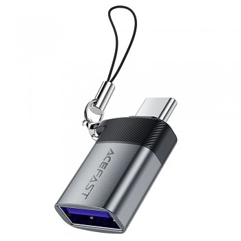 Adaptér J7 zaujme na první pohled svým minimalistickým a sofistikovaným vzhledem. Jeho tělo je vyrobeno z odolné hliníkové slitiny v atraktivní kovově šedé barvě, která podtrhuje jeho prémiový charakter. Design doplňuje decentní texturovaná černá část u konektoru Type-C a výrazný fialový/modrý vnitřek USB-A portu, což dodává adaptéru moderní šmrnc. Díky svým kompaktním rozměrům a přiloženému praktickému poutku je adaptér J7 ideální pro snadné přenášení a vždy po ruce, ať už jste kdekoli.