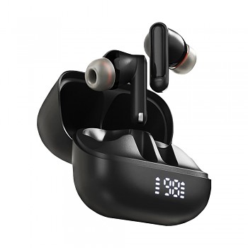 Design sluchátek Acefast W1 je synonymem pro minimalismus a eleganci. Sluchátka i nabíjecí pouzdro jsou vyvedeny v matné černé barvě, která působí sofistikovaně a nadčasově. Ergonomický tvar špuntových sluchátek s vyměnitelnými silikonovými nástavci zajišťuje pohodlné a stabilní usazení v uchu i při dlouhodobém nošení. Nabíjecí pouzdro má kompaktní, zaoblený tvar a na jeho přední straně naleznete digitální LED displej, který přehledně zobrazuje stav nabití baterie pouzdra i jednotlivých sluchátek. Logo značky ACEFAST je decentně umístěno na víku pouzdra.