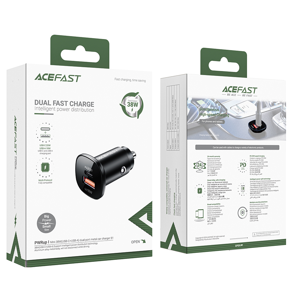 **Acefast** je dynamická a inovativní značka, která se rychle etablovala na trhu s mobilním příslušenstvím. Její filozofie spočívá ve vývoji **vysoce kvalitních produktů**, které kombinují **nejmodernější technologie**, **spolehlivost** a **uživatelsky přívětivý design**. Acefast klade velký důraz na **bezpečnost a výkon**, což zaručuje, že každý produkt, včetně této autonabíječky, splňuje přísné standardy a poskytuje **optimální uživatelský zážitek**.