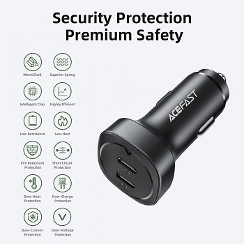 Acefast Car Charger B2 2x Type-C Dual PD Rychlonabíjení 72W ČernáPředstavujeme Acefast Car Charger B2 – ideální řešení pro každého, kdo potřebuje spolehlivé a extrémně rychlé nabíjení svých zařízení i na cestách. S tímto elegantním a výkonným nabíječem už nikdy nebudete mít vybitý telefon nebo tablet, ať už jedete kamkoli.