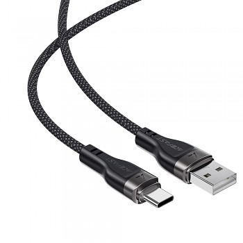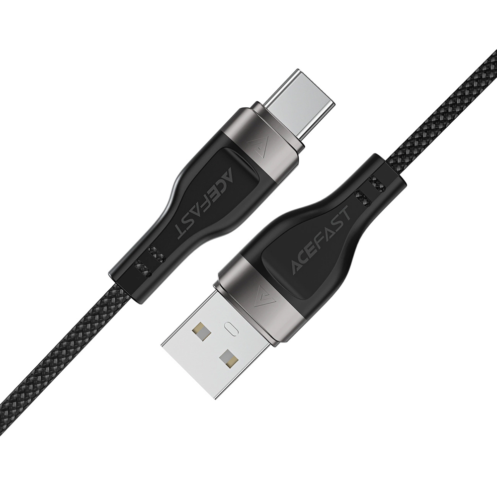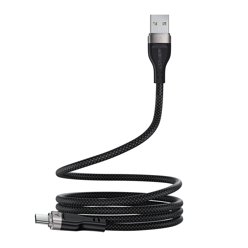 Kabel Acefast C11-04 se pyšní moderním a funkčním designem. Jeho černé opletení mu dodává prémiový vzhled a zároveň zvyšuje jeho odolnost proti mechanickému poškození. Konektory USB-A a Type-C jsou vyvedeny v černé barvě s elegantními kovovými šedými akcenty, které podtrhují celkový estetický dojem. Na obou koncích kabelu je decentně umístěno logo značky Acefast, které symbolizuje kvalitu a preciznost. Díky robustní konstrukci a pečlivému zpracování je tento kabel nejen praktickým, ale i stylovým doplňkem.