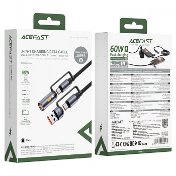 Acefast Data Cable J6 Multifunkční Rychlonabíjecí USB USB-C na Type-C Zapalovač 60W 3A 1.2m ČernáPředstavujeme Acefast Data Cable J6, inovativní a vysoce výkonný multifunkční kabel, který se stane nepostradatelným doplňkem pro nabíjení a synchronizaci vašich zařízení. Tento kabel je navržen s ohledem na maximální flexibilitu a spolehlivost, aby vyhověl všem vašim potřebám, ať už jste doma, v kanceláři nebo na cestách.