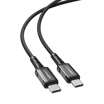 Kabel Acefast C1-03 se pyšní prémiovým designem v nadčasové černé barvě. Jeho tělo je opleteno odolným nylonem, který výrazně prodlužuje životnost kabelu a chrání jej před každodenním opotřebením, zamotáním a lámáním. Kovové koncovky konektorů Type-C v elegantní šedé barvě nejen skvěle vypadají, ale také zajišťují pevné a stabilní připojení. Zesílené spoje mezi kabelem a konektory s žebrovanou texturou minimalizují namáhání a zvyšují odolnost v nejkritičtějších bodech, což zaručuje dlouhodobou funkčnost.