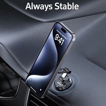 Držák Acefast D20 se pyšní minimalistickým a sofistikovaným designem, který skvěle doplní interiér každého vozu. Jeho stříbrné provedení z lesklé slitiny zinku dodává produktu luxusní vzhled a pocit. Kruhový magnetický povrch s černým lemem zajišťuje nejen pevné uchycení, ale i estetickou čistotu. Díky skládací konstrukci a 3osému kloubu lze držák snadno složit, když jej nepoužíváte, a udržet tak palubní desku přehlednou.