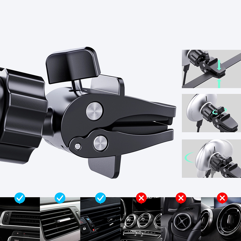 Acefast Držák do auta s bezdrátovým nabíjením D3 na větrací mřížku stříbrnýPředstavujeme Acefast Držák do auta s bezdrátovým nabíjením D3 – dokonalé spojení elegance, funkčnosti a moderní technologie pro vaše cesty. Tento inovativní držák zajistí, že váš telefon bude vždy bezpečně upevněn a zároveň se bude rychle a efektivně nabíjet, a to vše s maximálním komfortem.