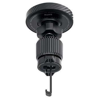 Držák Acefast D33 se pyšní moderním a minimalistickým designem v elegantní černé barvě. Jeho kruhový nabíjecí panel je obklopen stylovým prvkem s texturou imitující karbonová vlákna, což dodává produktu prémiový vzhled. Zelený LED indikátor decentně signalizuje stav nabíjení a podtrhuje technologickou vyspělost zařízení. Díky kompaktním rozměrům a promyšlené konstrukci se držák stane nenápadnou, avšak nepostradatelnou součástí interiéru vašeho vozu.