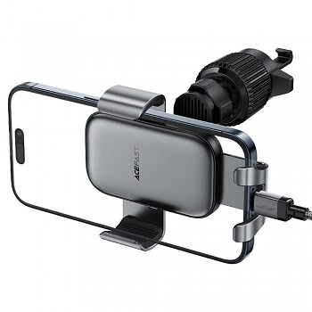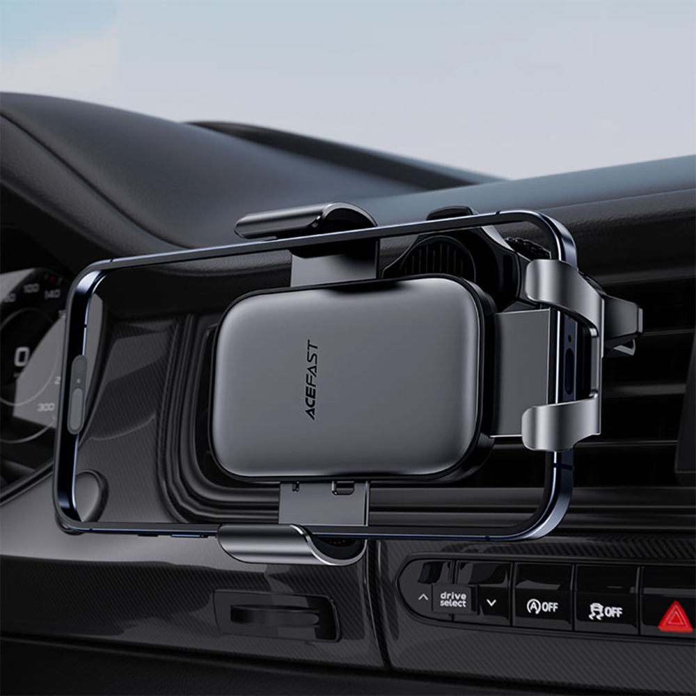 Držák Acefast D38 se pyšní moderním a minimalistickým designem v kovově šedé barvě, která se dokonale hodí do interiéru každého moderního automobilu. Jeho kompaktní rozměry a nenápadné umístění do ventilační mřížky zajišťují, že držák nebude bránit ve výhledu ani narušovat estetiku palubní desky. Precizní zpracování a hladké linie podtrhují prémiový charakter produktu, zatímco silikonové podložky chrání váš telefon před poškrábáním.