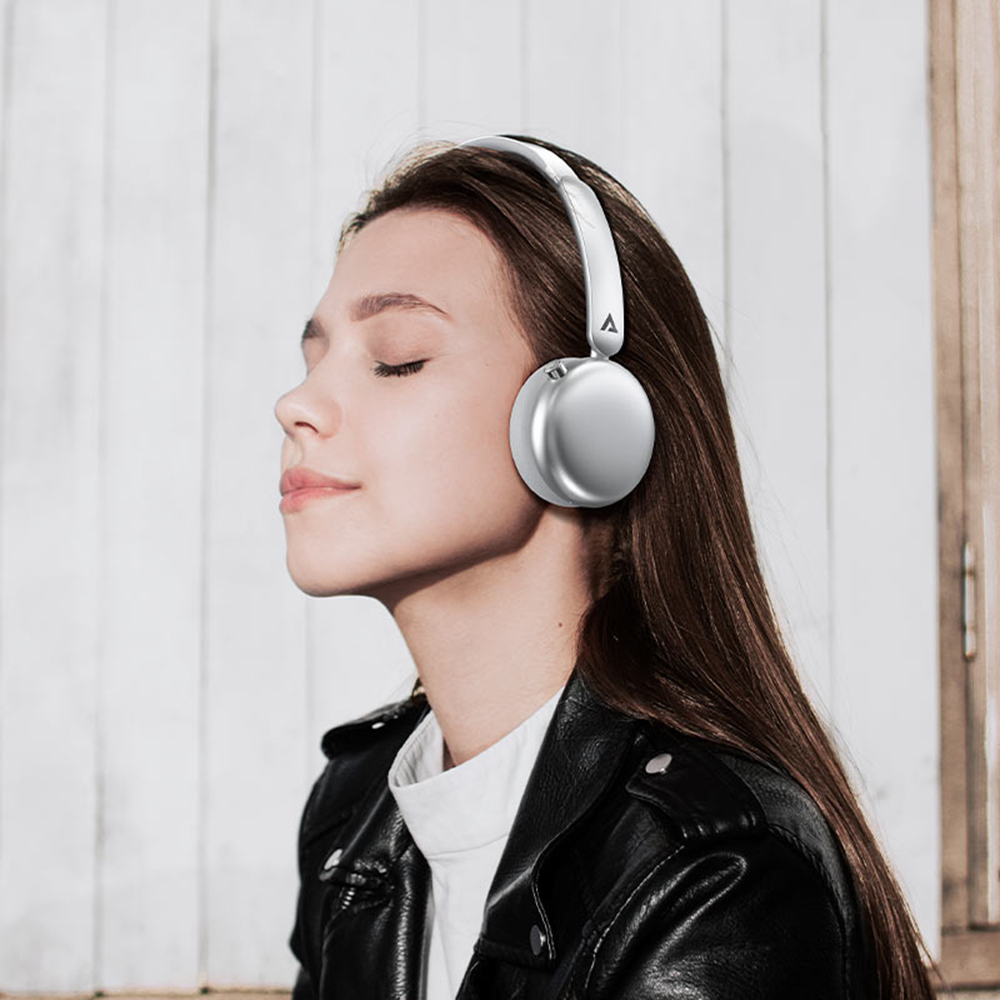 Sluchátka Acefast H8 se pyšní minimalistickým a moderním designem ve stříbrné barvě, který podtrhuje jejich prémiový charakter. Náušníky mají hladký, zaoblený tvar a jsou vyrobeny z matného kovu, což jim dodává sofistikovaný vzhled. Hlavový most je polstrovaný a potažený světlým materiálem, pravděpodobně kůží nebo koženkou, s decentním vyraženým logem "ACEFAST" na horní straně, což zajišťuje maximální komfort i při dlouhodobém nošení. Ovládací prvky a nabíjecí port Type-C jsou diskrétně umístěny na spodní straně jednoho z náušníků, což přispívá k celkově čistému vzhledu. Díky svému promyšlenému designu a kvalitním materiálům jsou sluchátka Acefast H8 nejen funkčním doplňkem, ale i stylovým módním prvkem.