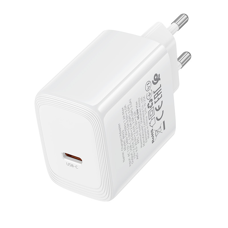Adaptér Borofone BN33 Fuente GaN Typ C QC 3.0 PD 40W bílýDesign: Adaptér na první pohled osloví svou čistou a moderní estetikou, u které hraje hlavní roli spolehlivost a efektivní rozložení prostoru. Díky nasazení pokročilé technologie GaN (nitrid gallitý) je celé zařízení překvapivě malé a zaručuje mimořádně výkonné chlazení a odvod tepla.