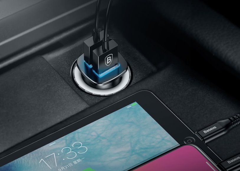Adaptér do auta Baseus CCALL-DS01 Square 2xUSB QC3.0 30W Black