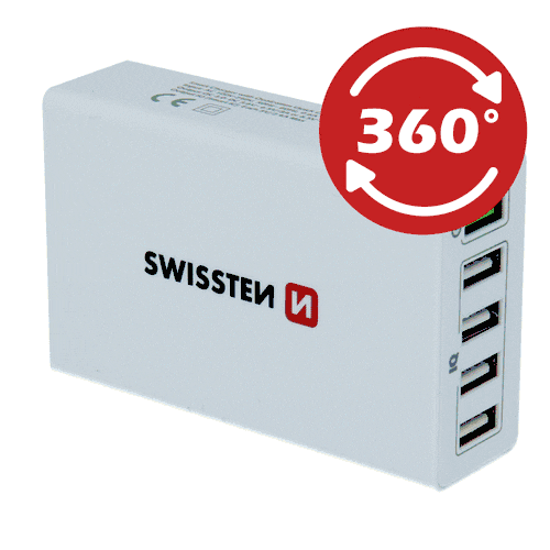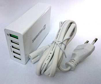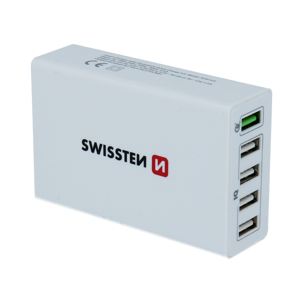 Adaptér Swissten Qualcomm 3.0 + Smart IC 5x USB 50W bílýSíťový adaptér SWISSTEN s technologií QUALCOMM 3.0 QUICK CHARGE a SMART IC. Adaptér disponuje 5 USB porty a neuvěřitelným výkonem 50W. Součástí balení je samostatný napájecí kabel k adaptéru. Balení v blistru Swissten.