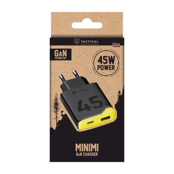 Adaptér Tactical Minimi GaN 45W ACAdaptér se pyšní velmi štíhlým a precizně tvarovaným tělem, které je navrženo speciálně s ohledem na časté přenášení a úsporu místa v elektrických zásuvkách.