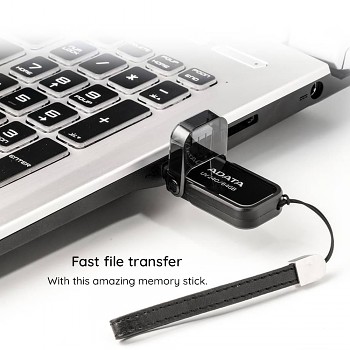 Flash disk Adata UV240 se pyšní minimalistickým a elegantním designem v klasické černé barvě. Jeho kompaktní rozměry a nízká hmotnost z něj činí ideálního společníka na cesty. Klíčovým prvkem designu je otočná krytka, která chrání USB konektor před poškozením a nečistotami, aniž byste se museli obávat ztráty víčka. Díky integrovanému očku pro poutko jej snadno připevníte ke klíčům nebo batohu a budete mít svá data vždy po ruce.