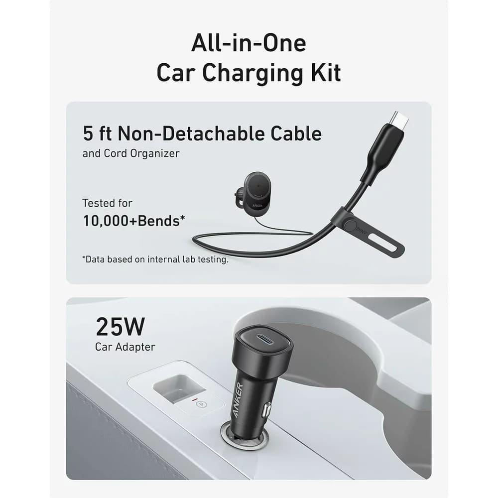 Anker MagGo B2932G11 se pyšní minimalistickým a moderním designem v matně černé barvě, který dokonale zapadne do interiéru každého vozu. Nabíjecí podložka má elegantní oválný tvar s decentním logem Anker. Robustní konstrukce a kvalitní materiály zaručují dlouhou životnost a spolehlivost. Integrovaný kabel s organizérem přispívá k udržení pořádku a estetiky v autě.