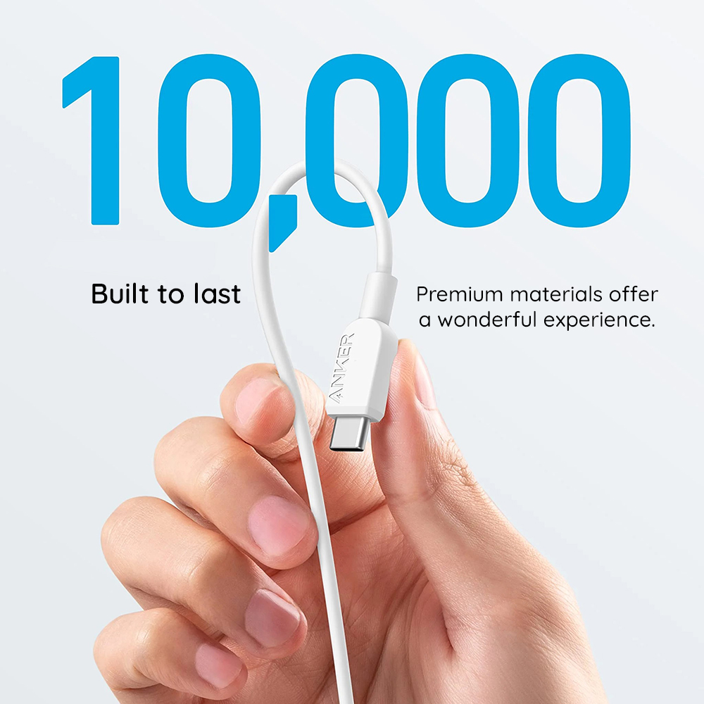 Design kabelu Anker 310 je stejně působivý jako jeho výkon. V **čistě bílé barvě** s minimalistickým vzhledem se dokonale hodí k jakémukoli zařízení. Kabel má **plochý nebo mírně oválný profil**, což nejenže přispívá k jeho elegantnímu vzhledu, ale také **minimalizuje zamotávání** a usnadňuje jeho skladování. Konektory jsou opatřeny **diskrétním logem Anker**, které podtrhuje prémiovou kvalitu. Díky **prémiovým materiálům** je kabel navržen tak, aby vydržel a nabídl vám skvělý uživatelský zážitek.
