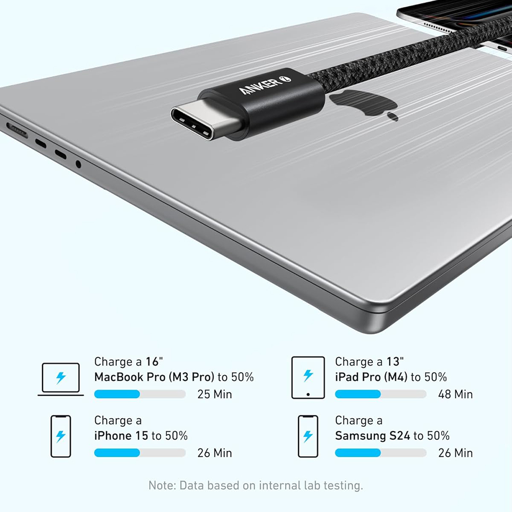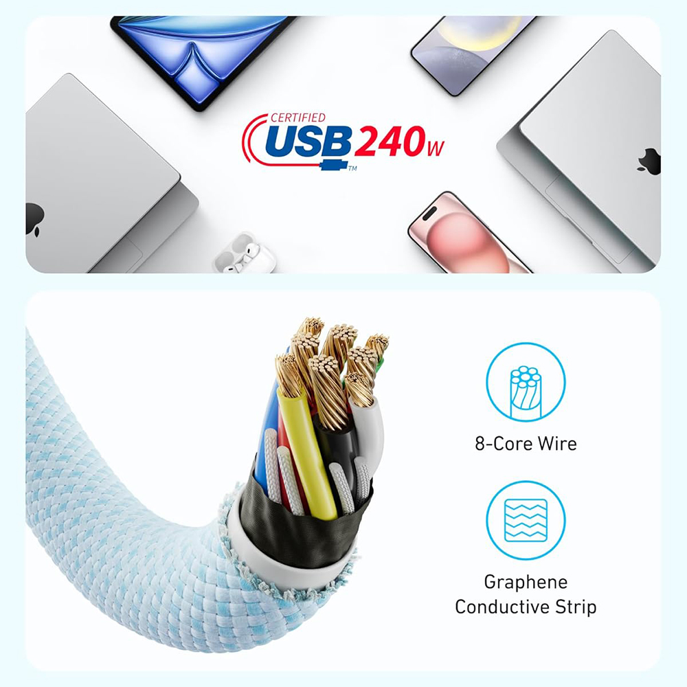 S tímto kabelem získáte extrémní výkon 240W, což zajišťuje bleskurychlé nabíjení kompatibilních zařízení. Díky oboustranným konektorům Type-C na Type-C je univerzálně použitelný pro širokou škálu elektroniky. Délka 1 metr poskytuje optimální flexibilitu pro každodenní použití, ať už doma, v kanceláři nebo na cestách.