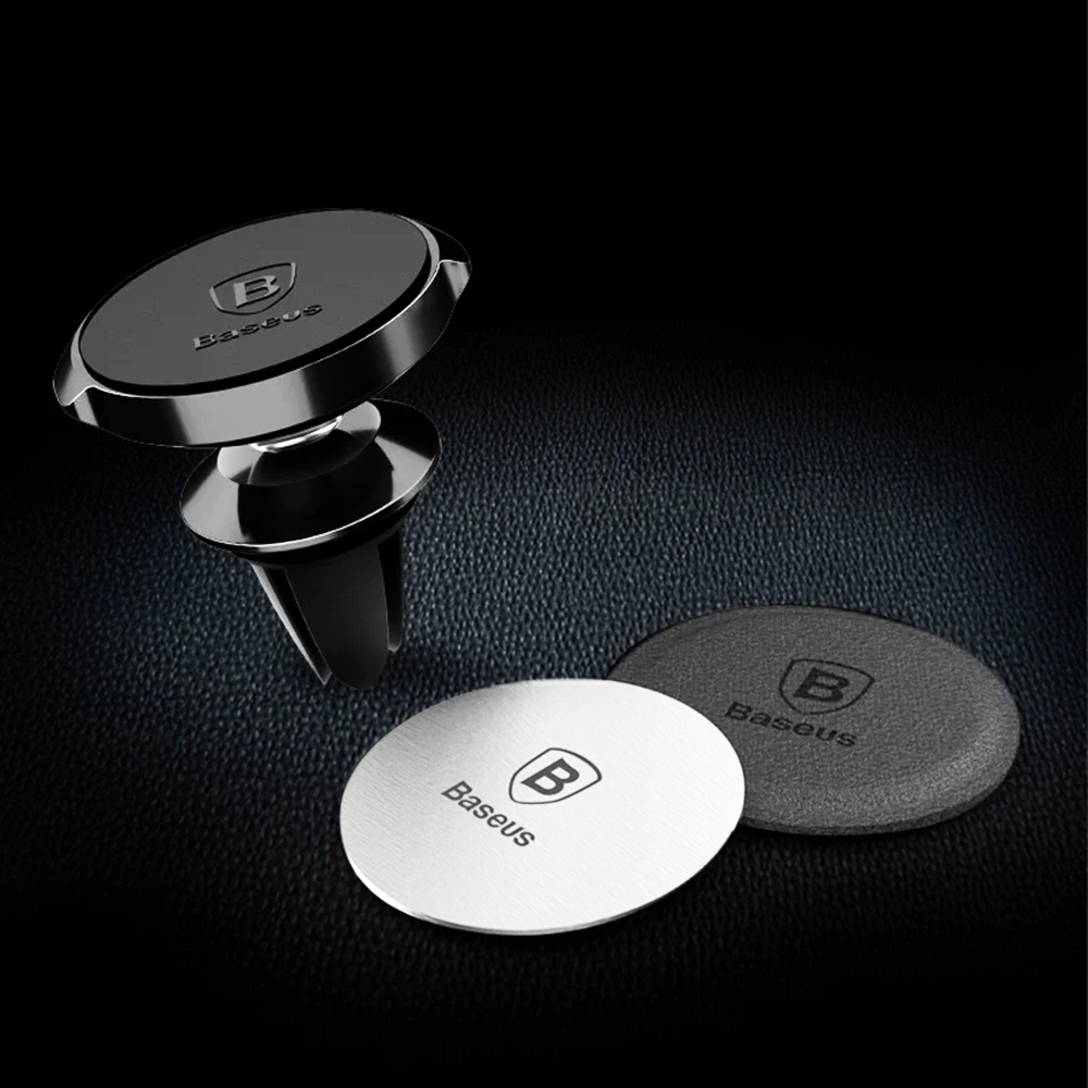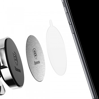 Balení obsahuje dvě unikátní destičky, které se dokonale přizpůsobí vašemu stylu. První destička je vyrobena z kvalitní PU kůže v elegantní černé barvě, která dodává luxusní vzhled a příjemný dotek. Druhá destička se pyšní povrchem z broušeného kovu ve stříbrném odstínu, což jí propůjčuje moderní a minimalistický vzhled. Obě destičky jsou kulatého tvaru a jsou diskrétně označeny logem Baseus, které symbolizuje kvalitu a inovaci. Díky svému tenkému profilu a preciznímu zpracování se snadno připevní na zadní stranu telefonu nebo pod kryt, aniž by narušily jeho design nebo přidaly zbytečný objem.
