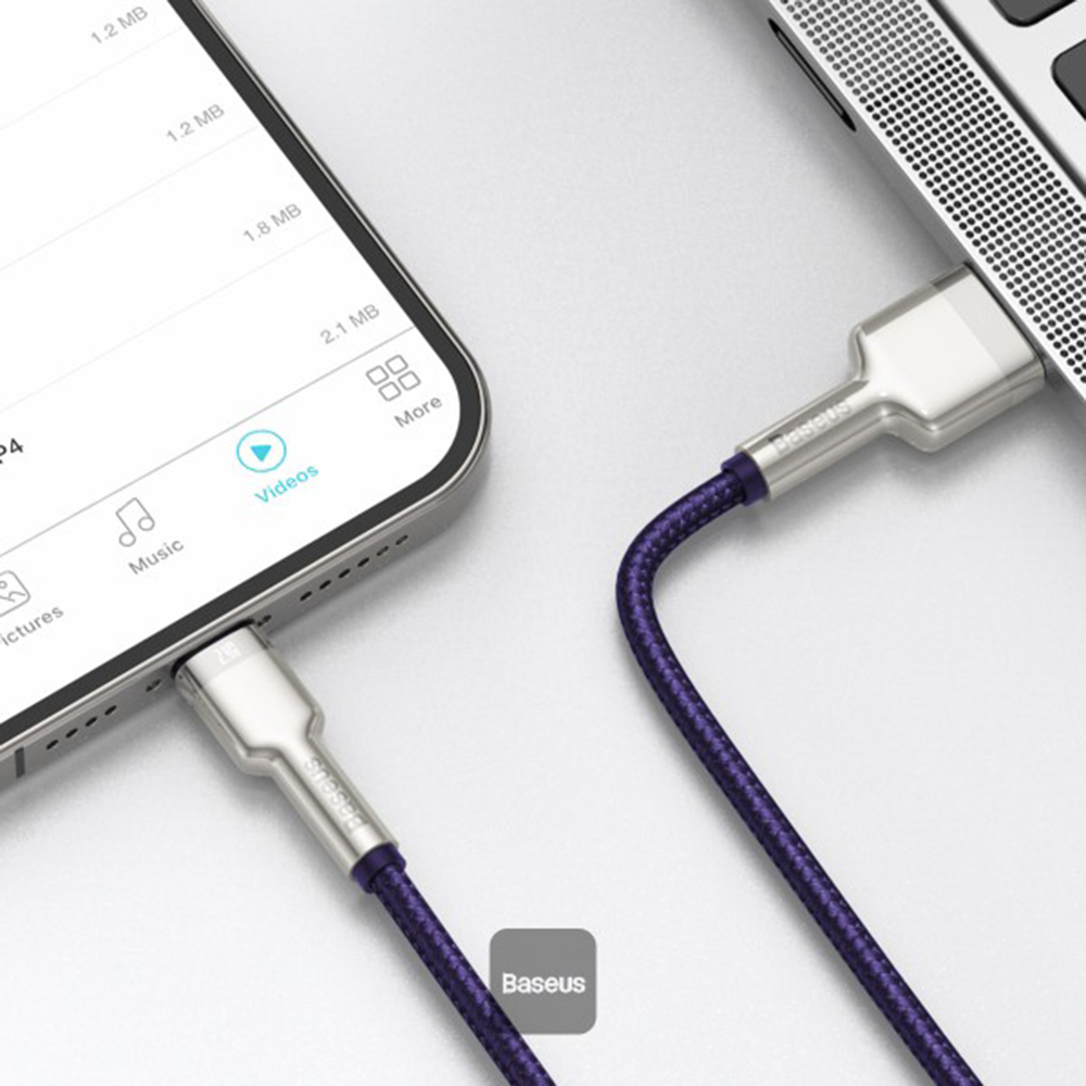 Kabel Baseus Cafule Metal CALJK-B05 se pyšní prémiovým zpracováním. Jeho fialové opletení z odolného materiálu nejenže dodává kabelu moderní a stylový vzhled, ale zároveň zajišťuje vysokou odolnost proti zamotání a mechanickému poškození. Kovové konektory, vyrobené z kvalitní slitiny, jsou navrženy tak, aby vydržely každodenní používání a poskytovaly stabilní a bezpečné připojení. Díky jejich celokovové konstrukci udržují konstantní teplotu, což přispívá k bezpečnějšímu a rychlejšímu nabíjení. Vnitřní struktura kabelu obsahuje čtyři prameny zesílených jader, které zvyšují vodivou plochu a snižují rušení pro ještě stabilnější přenos dat a nabíjení.