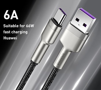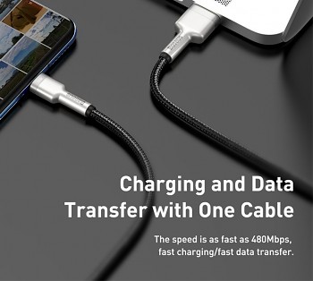 Baseus Cafule nabíjecí a datový kabel USB na USB-C kovovými koncovkami.
