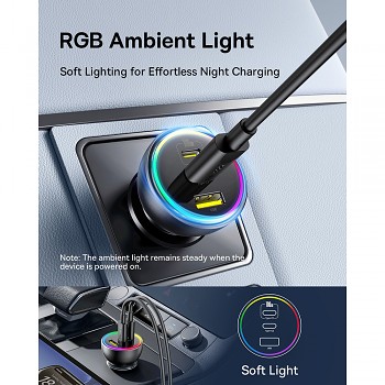 Baseus Car Charger 2x USB-C USB 152.5W Rychlé Nabíjení RGB USB-C Kabel ČernáPředstavujeme vám Baseus autonabíječku s výkonem 152.5W, která je synonymem pro rychlé a efektivní nabíjení na cestách. Tento prémiový produkt kombinuje špičkovou technologii s moderním designem, aby zajistil, že vaše zařízení budou vždy plně nabitá, ať už jste kdekoli.