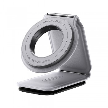 Držák Baseus PrimeTrip Series C02 se pyšní minimalistickým a sofistikovaným designem v matné šedé barvě, který se harmonicky začlení do interiéru každého moderního vozu. Je vyroben z kvalitní PU kůže, která mu dodává prémiový vzhled a příjemný pocit na dotek. Jeho skládací konstrukce umožňuje snadné uložení a přizpůsobení úhlu pohledu. Klíčovým prvkem je kruhový magnetický úchyt, který zajišťuje pevné spojení s telefonem.