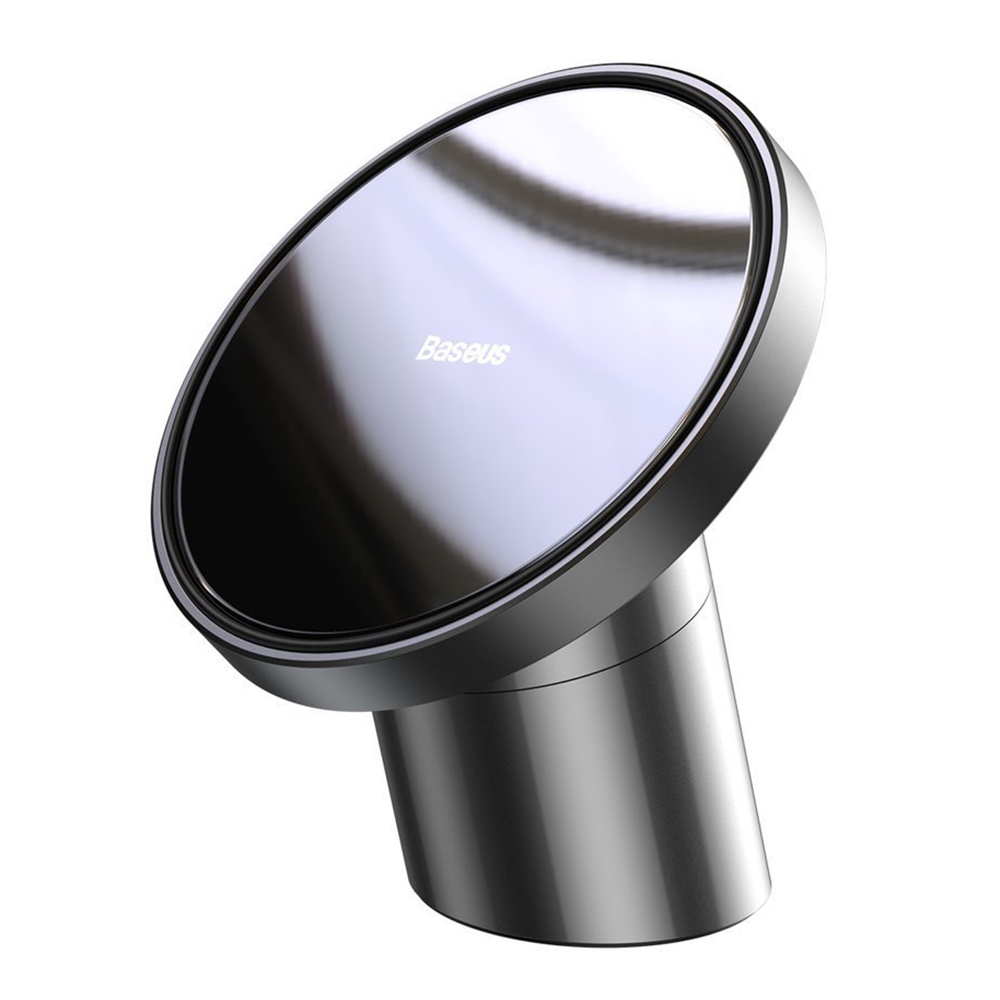 Design a zpracování: Držák se pyšní minimalistickým a moderním designem. Jeho tělo je tvořeno robustní válcovou základnou v matně černé barvě, která zajišťuje stabilitu a diskrétní vzhled. Na vrcholu se nachází kulatá magnetická plocha s lesklým povrchem, která je obklopena tenkým stříbrným rámečkem, dodávajícím produktu punc elegance. Na magnetické ploše je decentně umístěno logo značky Baseus. Celkové zpracování působí prémiovým dojmem a je navrženo tak, aby ladilo s interiérem moderních automobilů.