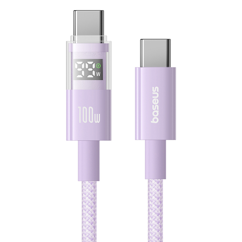Design kabelu Baseus Data Cable Display 2 je stejně působivý jako jeho výkon. Kabel se pyšní elegantní fialovou barvou a je potažen odolným pleteným materiálem, který zaručuje dlouhou životnost a odolnost proti zamotání a opotřebení. Jedinečným prvkem je integrovaný digitální displej na jednom z konektorů, který v reálném čase zobrazuje aktuální nabíjecí výkon ve wattech. Tento transparentní design konektoru nejen skvěle vypadá, ale také poskytuje užitečnou zpětnou vazbu o procesu nabíjení. Kabel byl navržen tak, aby vydržel více než 10 000 ohybů, což podtrhuje jeho robustnost a spolehlivost.