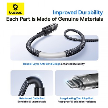 Kabel Baseus Data Cable Display 2 se pyšní řadou praktických parametrů. S podporou rychlého nabíjení 2.4A zajistí efektivní doplnění energie vašeho zařízení. Velkorysá délka 2 metry poskytuje dostatečnou flexibilitu a pohodlí při používání. Elegantní kosmická černá barva a minimalistický design s digitálním displejem dodávají kabelu moderní a sofistikovaný vzhled, který se hodí ke každému zařízení. Robustní konstrukce a kvalitní materiály zaručují dlouhou životnost a odolnost proti každodennímu opotřebení.