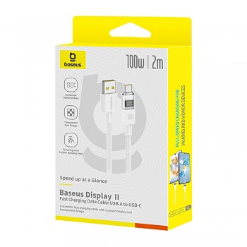 Baseus Data Cable Display 2 USB na Type-C Digitální Displej 100W 2m Měsíční BíláPředstavujeme Baseus Data Cable Display 2 – revoluční datový a nabíjecí kabel, který posouvá standardy rychlosti a přehlednosti. Tento kabel v elegantní měsíční bílé barvě je navržen pro ty, kteří vyžadují maximální výkon a zároveň chtějí mít přehled o procesu nabíjení.