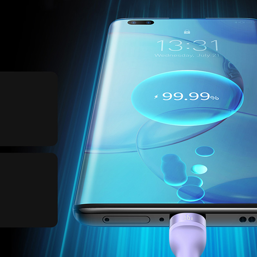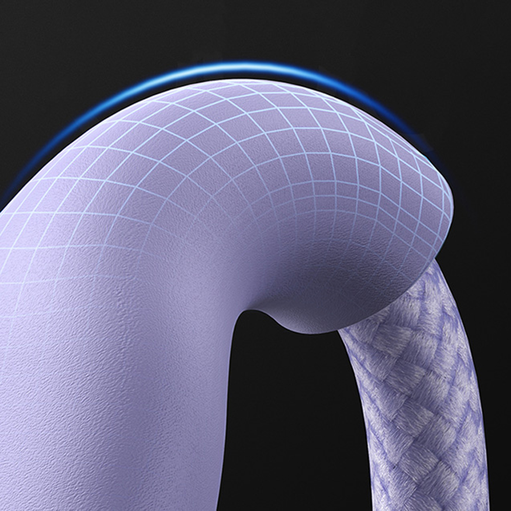Kabel Baseus Flash Series 2 zaujme na první pohled svým moderním a minimalistickým designem. Je vyveden v jemné fialové barvě, která dodá vašemu technickému vybavení šmrnc. Opletený povrch kabelu zajišťuje výjimečnou odolnost proti zamotání a mechanickému poškození, což prodlužuje jeho životnost a udržuje jej v perfektním stavu i při každodenním používání. Konektory jsou vyrobeny z kvalitních materiálů s ergonomickým tvarem pro snadné a bezpečné připojení. Centrální rozbočovač s decentním logem Baseus a integrovanou LED diodou elegantně spojuje tři nabíjecí větve a signalizuje stav nabíjení.