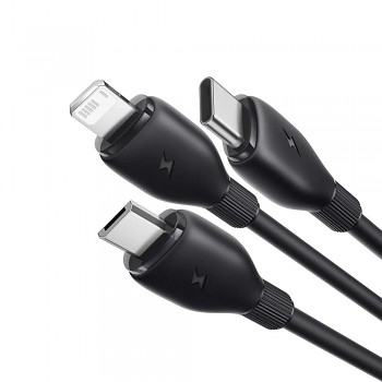 Baseus Data Cable Ultra-Fast rychlonabíjecí USB na Micro-USB Lightning USB-C 3.5A 1.3m černáPředstavujeme vám Baseus Ultra-Fast rychlonabíjecí kabel, který představuje revoluční řešení pro nabíjení a synchronizaci dat vašich zařízení. Tento inovativní kabel 3v1 eliminuje potřebu nosit s sebou několik různých kabelů, neboť kombinuje konektory Lightning, Micro-USB a USB-C do jednoho elegantního celku.