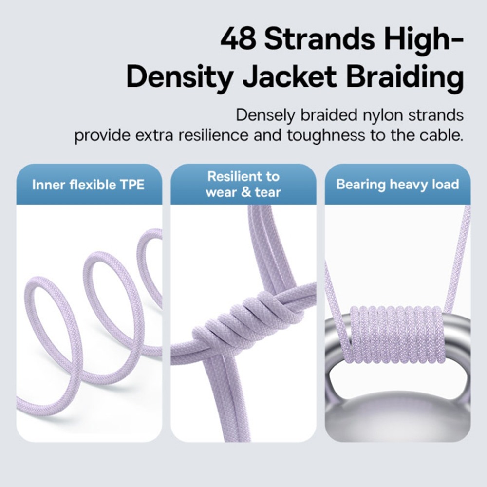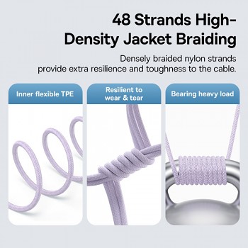 Kabel Baseus DataCable Gem se pyšní poutavým designem v odstínu NebulaPurple, který dodá vašemu technickému vybavení nádech elegance. Jeho povrch je tvořen odolným opletením, které efektivně zabraňuje zamotávání a prodlužuje životnost kabelu. Konektor Lightning je navíc opatřen průhledným pouzdrem, které odhaluje vnitřní obvody a zdůrazňuje tak technologickou vyspělost produktu. Na tomto konektoru je také decentně vyznačen výkon 20W. Součástí balení je praktický pásek na suchý zip s logem Baseus pro snadné uspořádání kabelu.