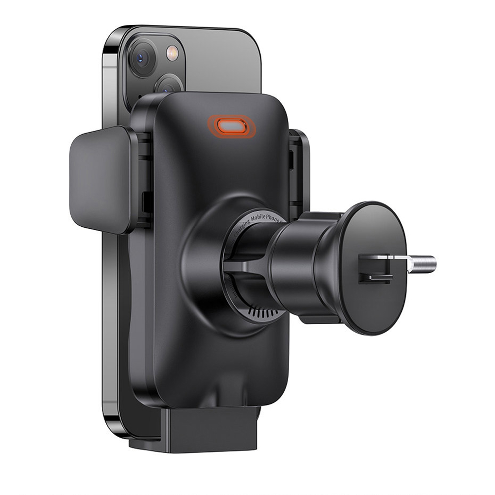 Držák Baseus Wisdom Alignment se pyšní moderním a minimalistickým designem. Jeho tělo je vyrobeno z odolných materiálů s matnou povrchovou úpravou, která působí prémiově a je příjemná na dotek. Elegantní černé provedení doplňuje diskrétní modrý LED indikátor, který signalizuje stav nabíjení a dodává produktu futuristický vzhled. Díky nastavitelným bočním úchytům a spodní opěrce je zajištěno pevné a bezpečné uchycení telefonu, které zabraňuje jeho vypadnutí i na nerovných cestách.