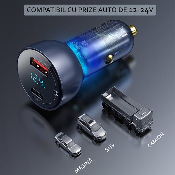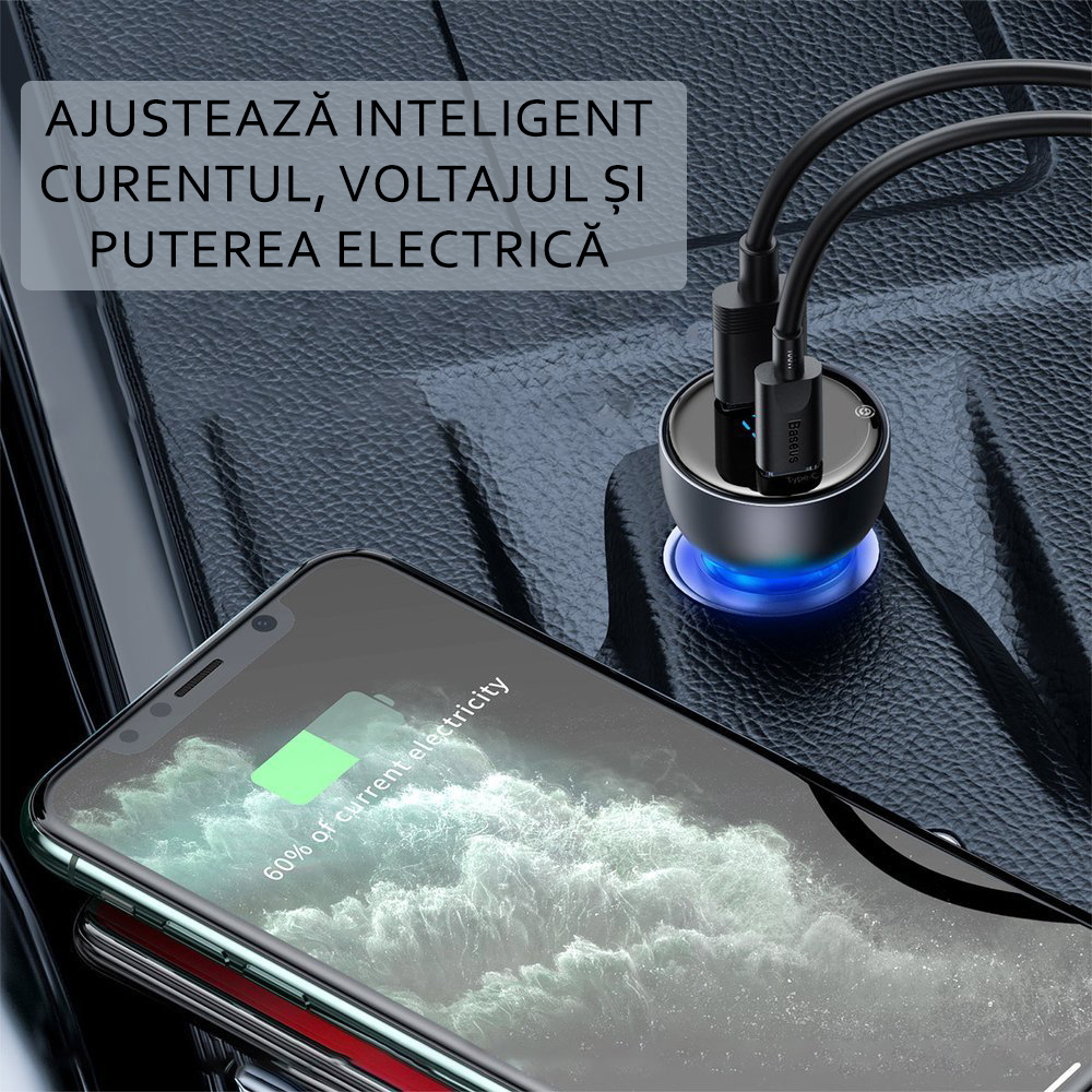 Baseus Nabíječka do auta CCKX-C0A s digitálním displejem PD65W QC4.0