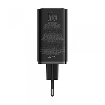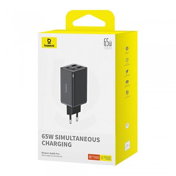 Baseus Nabíječka GaN 2x USB 2x Type-C 65W ČernáUrčeno pro: Všechny telefony, tablety, notebooky a další elektronická zařízení s podporou nabíjení přes USB-A a USB-C porty.