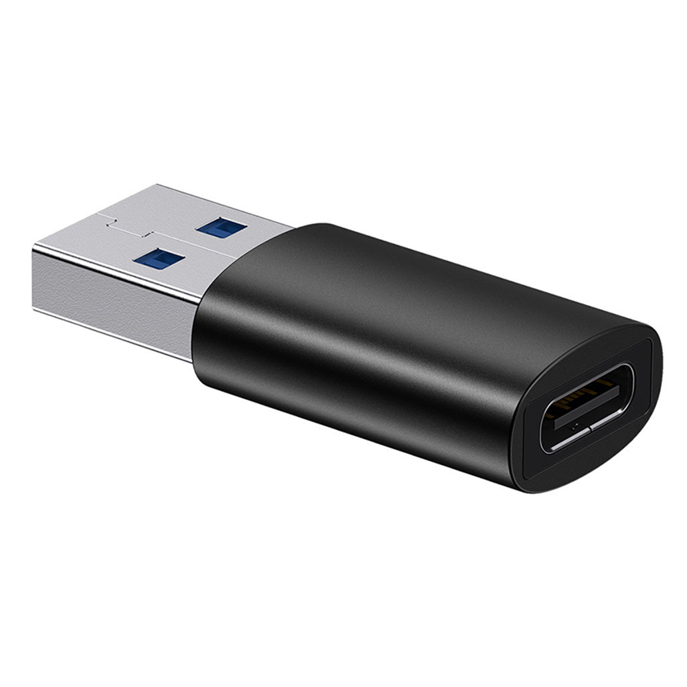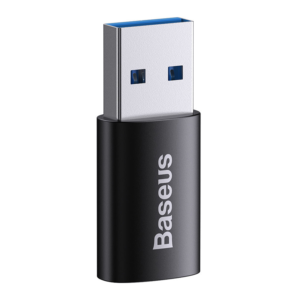Adaptér Baseus se pyšní minimalistickým a sofistikovaným designem. Jeho tělo je vyrobeno z odolného materiálu v matně černé barvě, což mu dodává prémiový vzhled a příjemný pocit na dotek. Díky svým kompaktním rozměrům a nízké hmotnosti je adaptér extrémně přenosný a snadno se vejde do kapsy, batohu nebo kabelky. Na jedné straně naleznete standardní konektor USB-A 3.1 s charakteristickým modrým vnitřkem, zatímco na druhé straně je umístěn moderní port USB-C. Logo značky Baseus je decentně umístěno na boku adaptéru, což podtrhuje jeho elegantní vzhled.