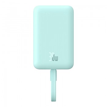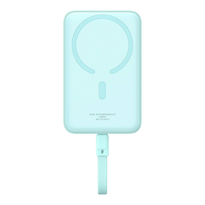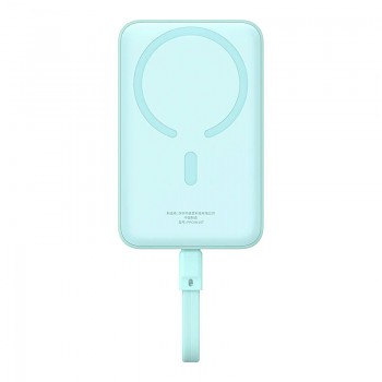 Design powerbanky Baseus Magnetic Mini je promyšlený do posledního detailu. Její kompaktní a minimalistické tělo v příjemném modrém odstínu se snadno vejde do každé kapsy či tašky. Na jedné straně dominuje výrazná magnetická plocha, která zajišťuje perfektní přilnavost k vašemu telefonu díky technologii MagSafe. Integrovaný praktický popruh, který zároveň slouží jako USB-C kabel, podtrhuje její funkčnost a eliminuje potřebu nosit další kabely. Celkový vzhled je moderní, čistý a uživatelsky přívětivý.