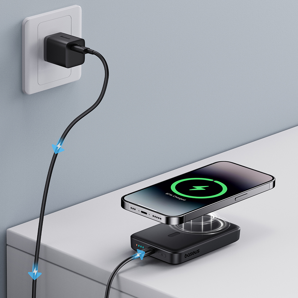 Baseus Power Bank Mini Air 10000mAh 20W MagSafe s kabelem Type-C černáObjevte dokonalého společníka pro vaše mobilní zařízení – Baseus Power Bank Mini Air 10000mAh 20W MagSafe v elegantní černé barvě. Tato kompaktní a výkonná power banka je navržena tak, aby vám poskytla spolehlivou energii na cestách, aniž by zatížila vaši kapsu nebo tašku. Díky inovativním funkcím a promyšlenému designu se stane nepostradatelnou součástí vaší každodenní výbavy.