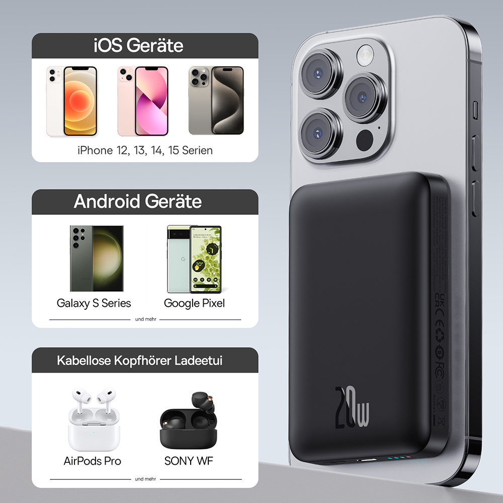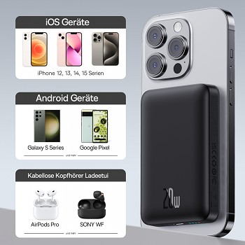 Určeno pro telefony s podporou MagSafe a zařízení s portem Type-C.