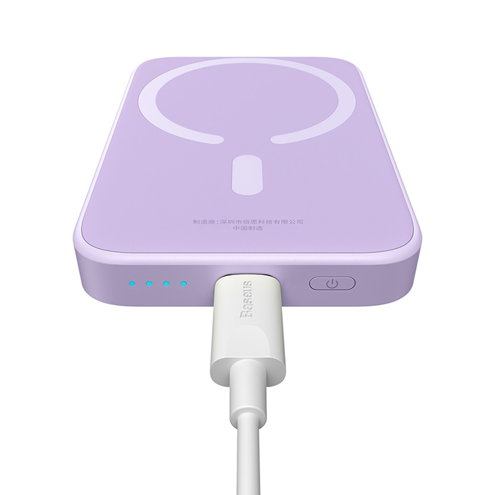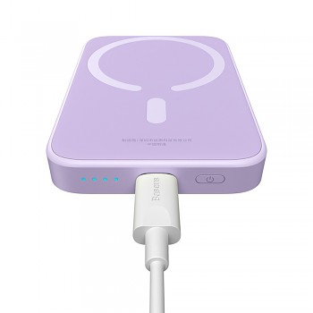 Design Baseus Power Bank Mini Air je navržen s důrazem na minimalismus a funkčnost. Její štíhlé tělo a nízká hmotnost zaručují, že se snadno vejde do každé kapsy nebo kabelky, aniž by přidávala zbytečnou zátěž. Hladký povrch a precizní zpracování v kombinaci s moderní fialovou barvou dodávají powerbance luxusní vzhled. Díky technologii MagSafe se powerbanka perfektně přichytí k zadní straně vašeho telefonu, což umožňuje pohodlné používání zařízení i během nabíjení.