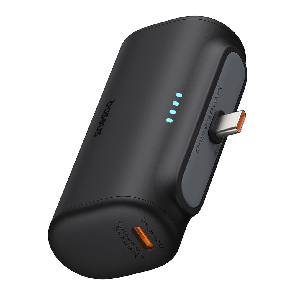 Design power banky Baseus P10068306113-00 je ztělesněním minimalismu a funkčnosti. Její kompaktní a zaoblené tělo v matně černé barvě působí velmi elegantně a příjemně se drží v ruce. Díky svým malým rozměrům se snadno vejde do kapsy, kabelky nebo batohu, což z ní činí ideálního společníka na cesty. Na těle power banky jsou umístěny čtyři modré LED indikátory, které přehledně zobrazují aktuální stav nabití baterie, takže vždy víte, kolik energie vám ještě zbývá. Integrovaný výsuvný konektor Type-C je skvěle promyšlený pro maximální pohodlí a minimalizaci nepořádku s kabely.