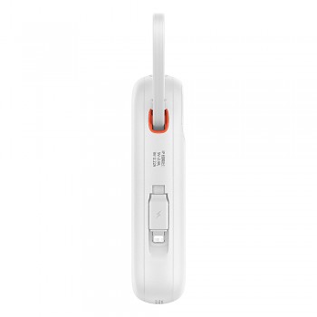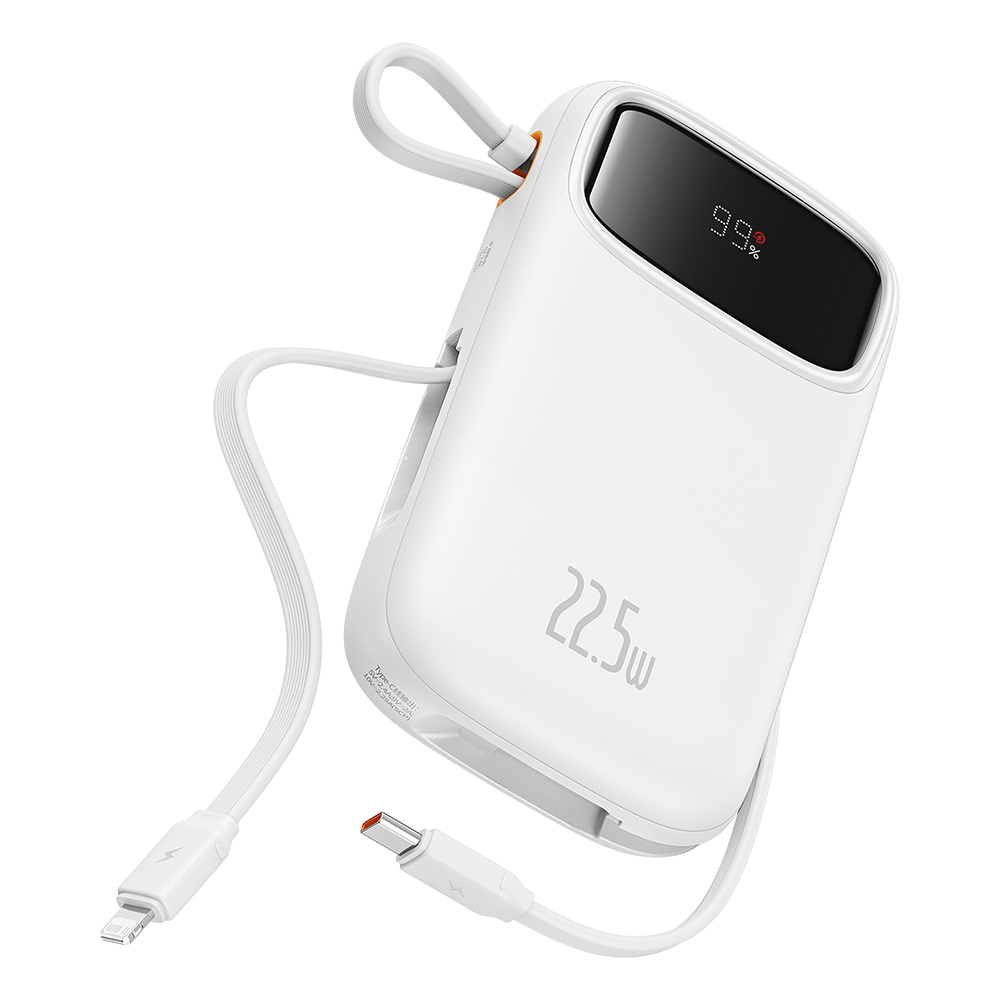 Powerbanka Baseus Qpow Pro+ se pyšní minimalistickým a moderním designem v čistě bílé barvě, který se hodí ke každému stylu. Její kompaktní rozměry a zaoblené hrany zajišťují pohodlné držení a snadné přenášení. Dominantou je integrovaný digitální LED displej, který přehledně zobrazuje zbývající procenta baterie, takže vždy víte, kolik energie vám ještě zbývá.