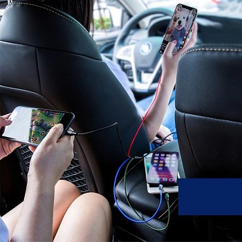 Kabel Baseus Rapid Series CA1T4-A01 se pyšní robustním a elegantním designem. Hlavní kabel s konektorem USB-A je vyveden v odolném černém opletení, které zajišťuje dlouhou životnost a odolnost proti zamotání a mechanickému poškození. Z centrálního rozbočovače s decentním logem Baseus se rozvětvují čtyři nabíjecí koncovky, každá s vlastním barevným opletením – zelená, černá, modrá a červená. Toto barevné rozlišení nejen dodává kabelu moderní vzhled, ale také usnadňuje rychlou identifikaci správného konektoru pro vaše zařízení. Koncovky jsou vyrobeny z kvalitních materiálů, které zaručují spolehlivé připojení a odolnost proti opotřebení. Celková délka kabelu činí 1,2 metru, přičemž hlavní část měří 90 cm a rozvětvené koncovky 30 cm, což poskytuje dostatečný dosah pro pohodlné používání.