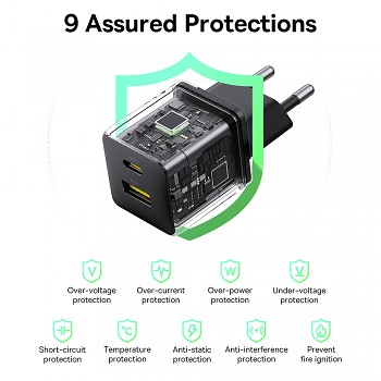 Nabíječka Baseus Wall Charger Palm 2v1 zaujme svým minimalistickým a moderním designem. Její kompaktní rozměry a nízká hmotnost zaručují, že se snadno vejde do každé tašky či kapsy, a je tak perfektní pro cestování. Matný černý povrch dodává nabíječce prémiový vzhled a zároveň je odolný proti otiskům prstů. Díky svému promyšlenému tvaru "Palm" se pohodlně drží a snadno se s ní manipuluje.