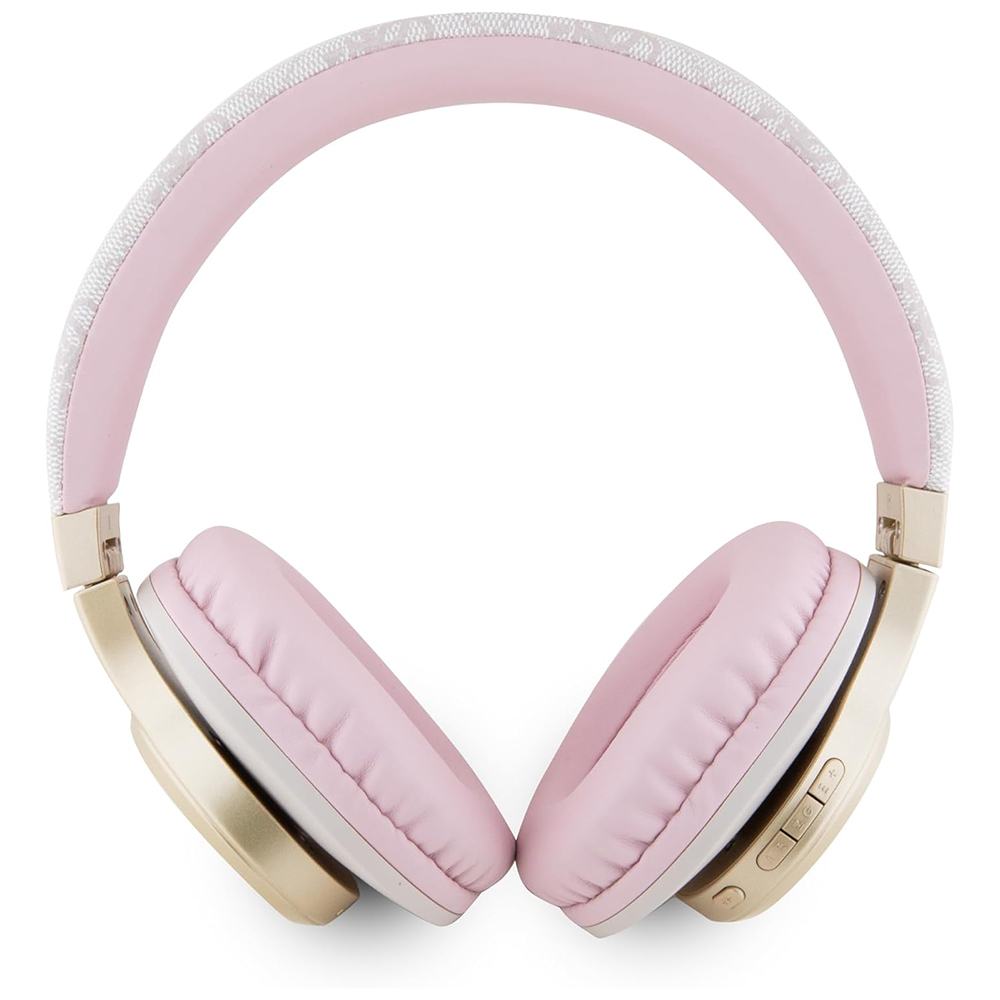 Sluchátka Guess 4G Script se pyšní sofistikovaným designem, který okamžitě upoutá pozornost. Dominantní růžová barva je doplněna o detaily v odstínu růžového zlata, což dodává celkovému vzhledu punc elegance. Náušníky jsou potaženy měkkou, světle růžovou kůží, která zajišťuje maximální pohodlí i při dlouhodobém poslechu. Hlavový most je zdoben charakteristickým 4G logem Guess v jemném vzoru, což podtrhuje exkluzivitu značky. Na vnější straně náušníků se vyjímá výrazné logo Guess ve skriptovém písmu, které je vkusně integrováno do lesklého povrchu v barvě růžového zlata. Ovládací prvky pro hlasitost, přepínání skladeb a přijímání hovorů jsou diskrétně umístěny na jednom z náušníků pro snadnou a intuitivní manipulaci.